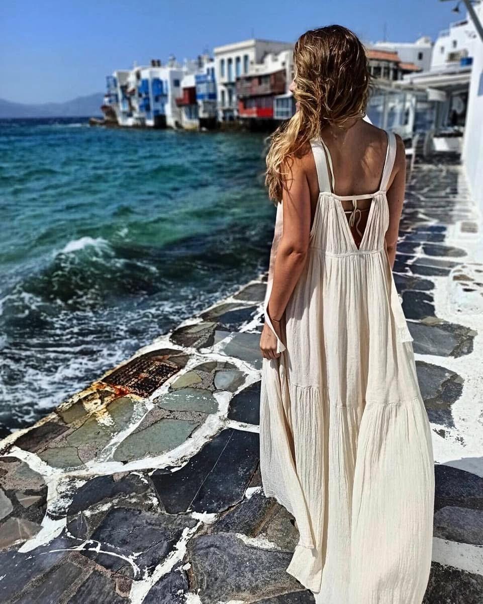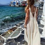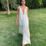 D’Artemide maxi dress, sleeveless with wide straps, V-neck, rope details on the bodice and back.